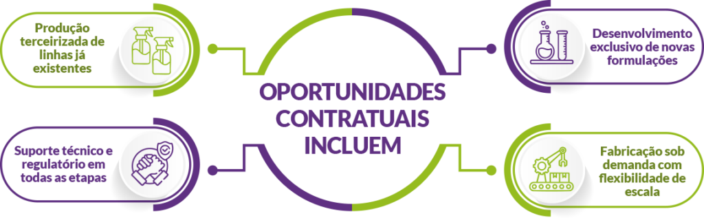 formulação, design e embalagem, permitindo que cada solução seja adaptada às necessidades específicas do seu público-alvo.